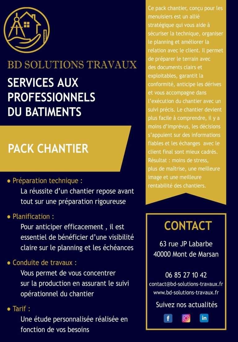 De la préparation technique à la gestion administrative, du pilotage de chantier à l’appui commercial, chaque pack est conçu comme un véritable levier de performance.